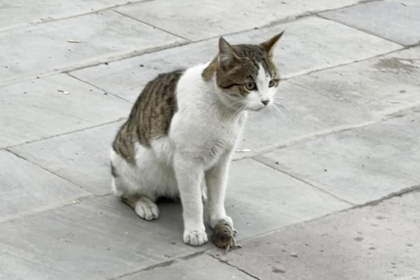Erzurum’da bir farenin kendisini avlamak isteyen kediden kurtulmak için ölü taklidi yaptığı anlar bir vatandaş tarafından anbean görüntülendi.