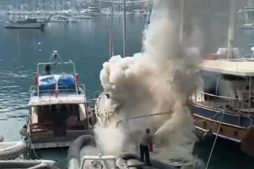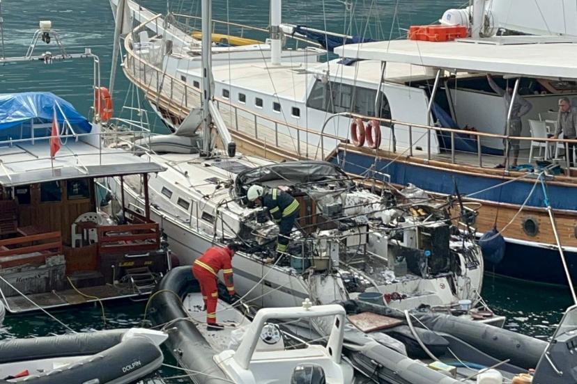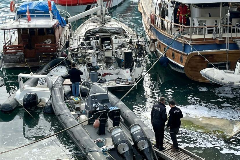 MUĞLA'nın Fethiye ilçesinde İcra Daireleri Kaçakçılık ve Deniz Araçları Men İstasyonu'nda bağlı yelkenli tekne, çıkan yangında kullanılamaz hale geldi.