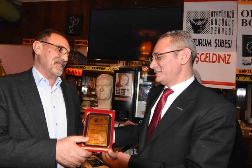 Program sonunda ADD Erzurum Şube Başkanı Fehmi Bedir tarafından Orhan Bozkurt’a plaket takdim edildi. Etkinlik, Kemal Balcı eşliğinde Ömer Bilgin’in seslendirdiği Atatürk’ün sevdiği türkülerden oluşan dinletiyle sona erdi.