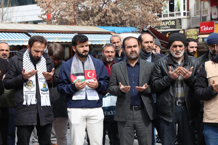 Gaziantep Kudüs Platformu, Cuma namazı sonrası Balıklı Parkı'nda bir araya gelerek ABD ve işgal rejiminin İran'a saldırılarını kınayan kitlesel basın açıklaması düzenledi.