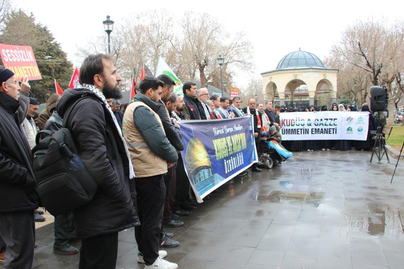 "Bugün burada sadece bir bölgenin değil, tüm insanlığın vicdan durağı olan Kudüs, Mescid-i Aksa ve Gazze’de yaşanan soykırıma dur demek; bu beldeleri elde etme adına siyonist yayılmacılığın küresel barışı nasıl bir uçuruma sürüklediğine dikkat çekmek ve İslam coğrafyasının dört bir yanında yakılan fitne ateşine karşı vahdeti haykırmak için toplanmış bulunmaktayız. Kudüs, yalnızca Filistin halkının değil, bütün Müslümanların ve bütün insanlığın ortak mirasıdır. Mescid-i Aksa ise Müslümanların ilk kıblesi ve mukaddes mabedlerinden biridir. Ancak bugün Kudüs, Mescid-i Aksa ve Gazze; siyonist işgal rejiminin sistematik saldırıları ve yayılmacı politikaları altında ağır bir kuşatma yaşamaktadır." dedi.