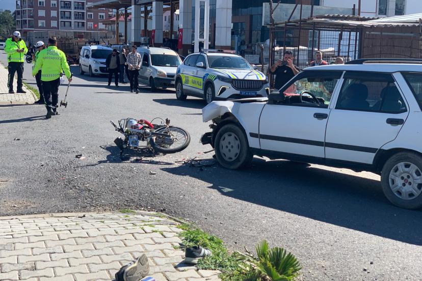 Olay, saat 13.30 sıralarında Cumhuriyet Mahallesi D-400 kara yolunda meydana geldi. H.K. idaresindeki 07 E 5283 plakalı otomobille karşı yönden gelen A.K. idaresindeki plakasız motosiklet çarpıştı. Kazada savrulan motosiklet sürücüsü A.K. yaralandı. İhbarla olay yerine gelen sağlık ekibi A.K.'yi hastaneye götürdü.
