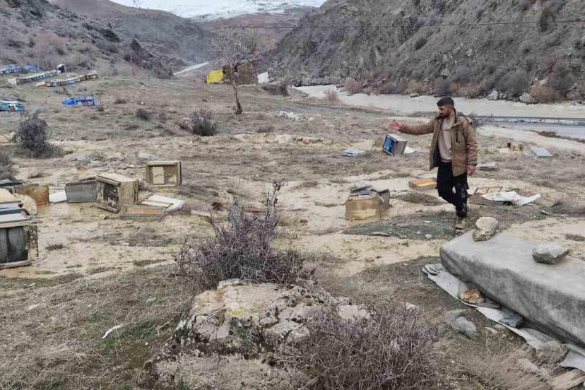 Hakkâri’de bir vatandaşa ait 300 arılı kovandan 150’si sel sularına kapılarak zarar gördü.