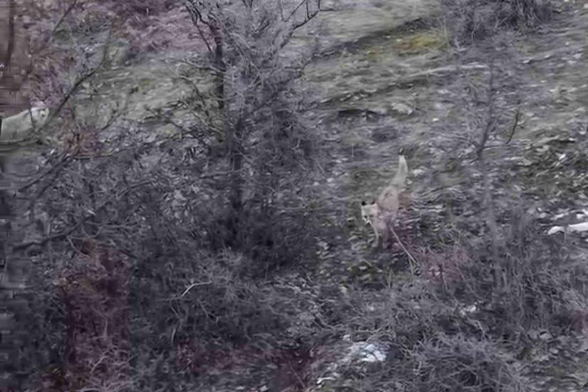 Muş’un Hasköy ilçesinde dağ yamacında ilerleyen iki tilki, dron kamerasına yansıdı.
