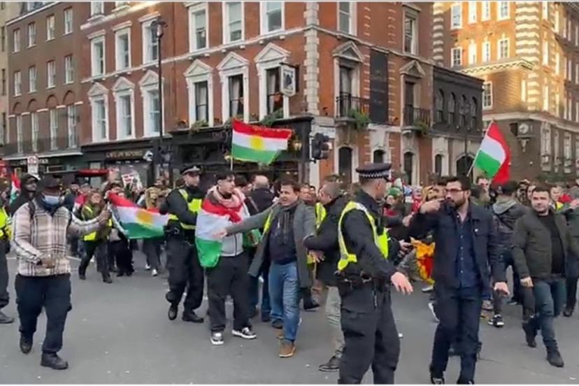 YPG/SDG yandaşları, düzenlediği gösterilerde provokatif eylemlere imza atarken bu kez Trafalgar Meydanı'nda toplandı.