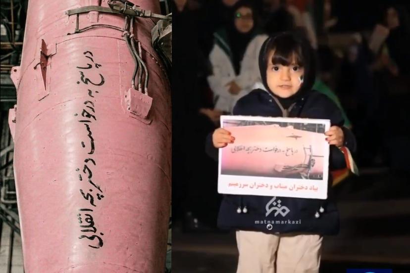 Daha önce sosyal medyada paylaşılan görüntülerde aynı çocuğun Devrim Muhafızları'ndan "pembe füze" talebinde bulunduğu ve Devrim Muhafızlarının da küçük kızın isteğine karşılık Tel Aviv'e "pembe füze" gönderdiği medyaya düşmüştü. (İLKHA)