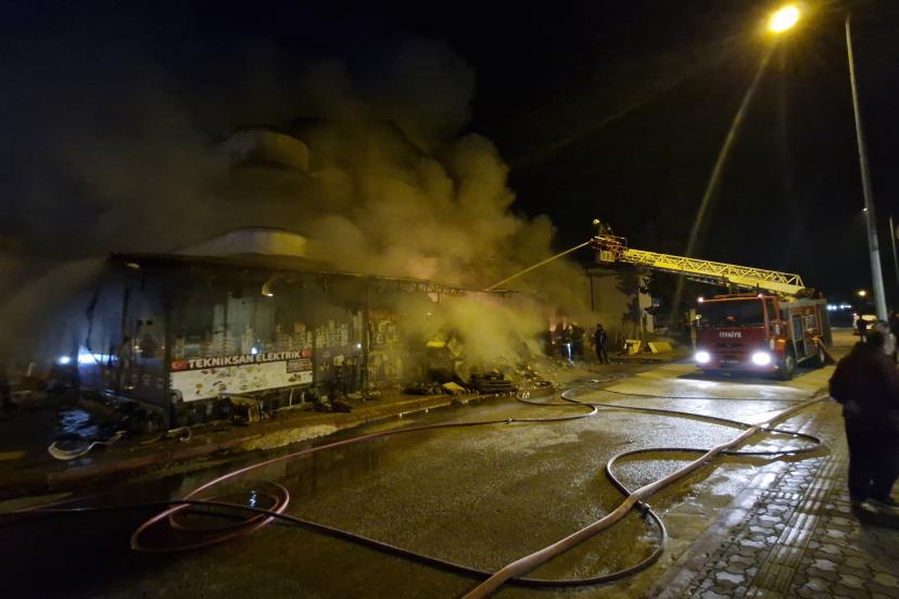 Yangın, dün saat 22.00 sıralarında Dr. Derviş Eroğlu Dörtyol Bulvarı'ndaki işletmede meydana geldi. 2 katlı binanın zemin katında elektrik malzemesi satılan iş yerinde başlayan yangında ihbar üzerine olay yerine itfaiye, polis ve sağlık ekibi sevk edildi. Büyüyen yangında alevler kısa sürede üst kattaki eve ve tüm binaya yayıldı. Üst kattaki dairede oturan 2'si çocuk 4 kişilik Soydan ailesi komşularının uyarısıyla dışarı çıktı. İtfaiye ekiplerinin müdahalesiyle yangın söndürüldü. İş yerinde yanan malzemelerde itfaiye uzun süre soğutma çalışması gerçekleştirdi.