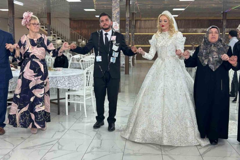Yaklaşık 10 yıldır Muğla’nın Marmaris ilçesinde turizm sektöründe çalışan Vanlı Musa Aslan, tatil için ailesiyle birlikte bölgeye gelen İskoçyalı Leanne ile tanıştı. Bir süre devam eden arkadaşlıklarının ardından evlilik kararı alan çift, düğün merasimi için damadın memleketi Van’ı tercih etti. İskoçya’dan Van’a gelen gelin ve ailesi, kentin tarihi ve kültürel dokusuna kısa sürede uyum sağladı. Van’daki bir düğün salonunda gerçekleştirilen merasimde, İskoç gelin yöresel kıyafetlerle davetlilerin ilgi odağı oldu. Van geleneklerine göre yapılan düğünde, yabancı gelin ve ailesinin halaylara eşlik etmesi renkli görüntüler oluşturdu. Tören, davetlilerin tebrikleri ve takı merasiminin ardından sona erdi.