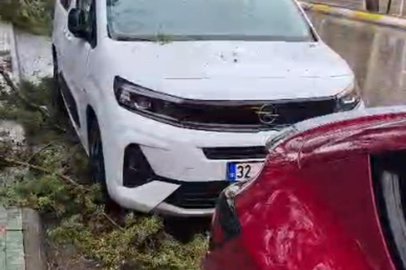 ISPARTA'da etkili olan sağanak ve şiddetli rüzgar yaşamı olumsuz etkiledi. Bir ağacın otomobil üzerine devrildiği anlar ise araç kamerasına yansıdı.