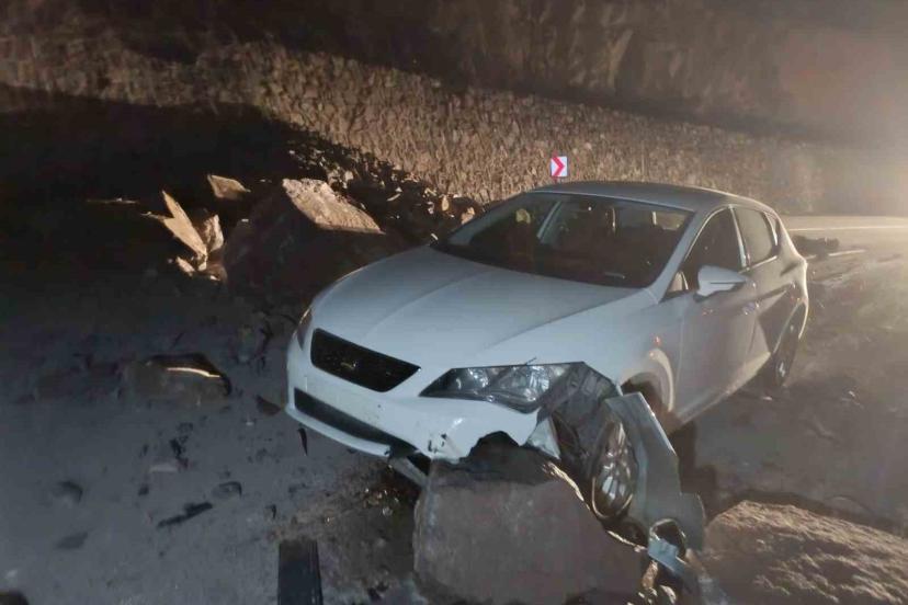 Dün gece yarısı meydana gelen olayda, 34 FM 6609 plakalı otomobil, İspir’den Erzurum istikametine seyir halindeyken İspir Maden Köprü mevkiinde meydana gelen ani heyelan sonucu yola düşen büyük kayalara çarptı. Kazada araç kullanılamaz hale gelirken, sürücünün hafif sıyrıklarla kazadan kurtulması olası bir faciayı önledi.