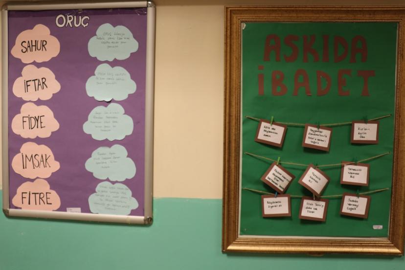Ramazan ayının manevi havasının teneffüs edilmesi, ibadet bilincinin aşılanması adına İstanbul'da okullar; kandiller, hilaller ve paylaşmayı, sabretmeyi hatırlatan yazı ve resimlerle süslendi.