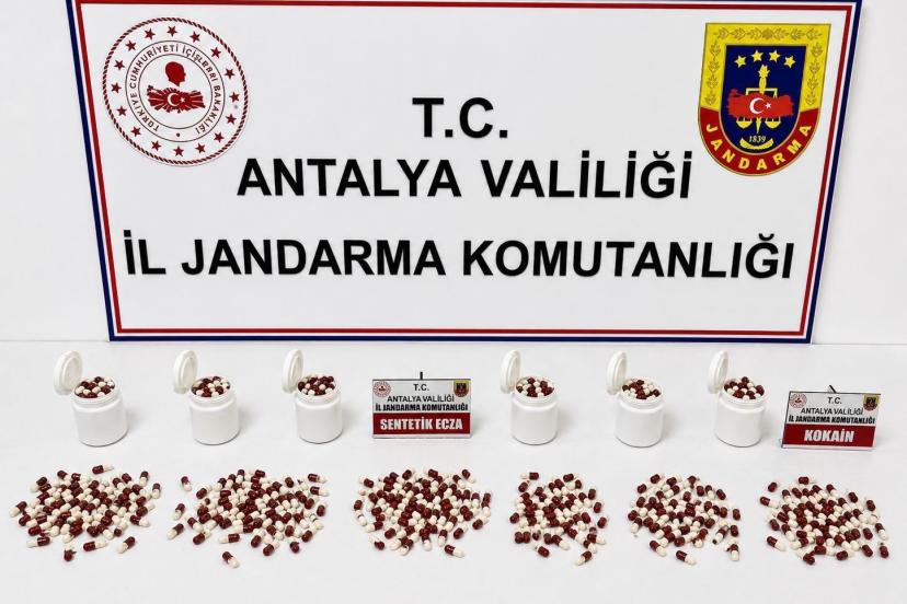 ANTALYA'nın Alanya ilçesinde jandarma ekiplerince düzenlenen 2 farklı operasyonda 1 kilo 80 gram sentetik kannabinoid ile 1303 sentetik ecza ve 5 gram kokain ele geçirildi.