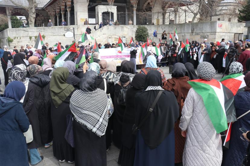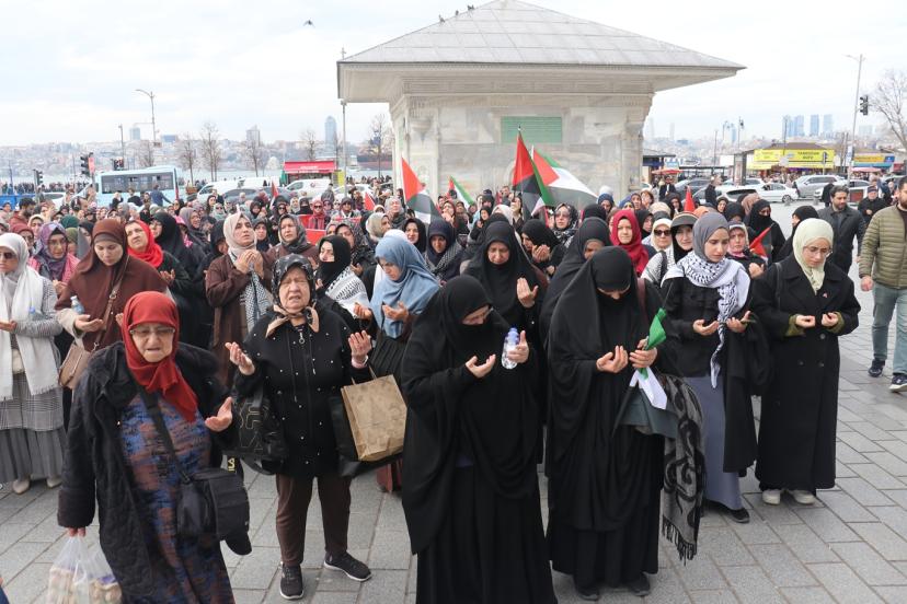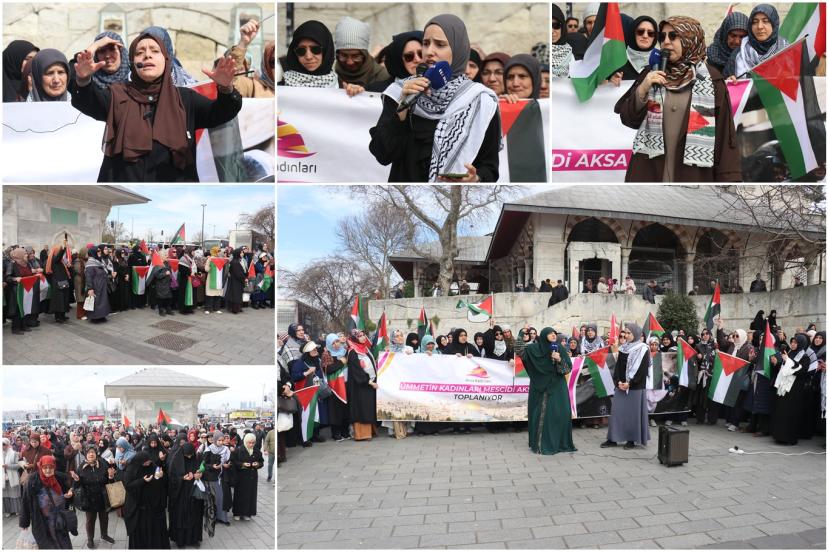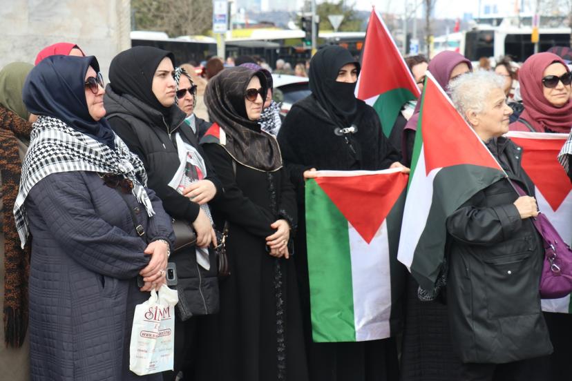 Aksa Kadınları Derneği tarafından cuma namazı sonrasında Üsküdar Mihrimah Sultan Camii önünde gerçekleştirilen eyleme; İşgal zindanlarında 3 yıl boyunca tutuklu kalan Gazzeli Samer Sabiyeh, Filistinli Hukukçu Rima Naimoğlu, çok sayıda sivil toplum kuruluşu temsilcisi ile Filistin duyarlılığı olan halk katıldı.