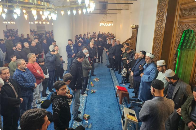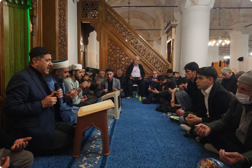 Program, kılınan teravih namazı sonrası Kur'an-ı Kerim tilaveti ile başladı, ardından Kürtçe Mevlid-i Şerif okundu.