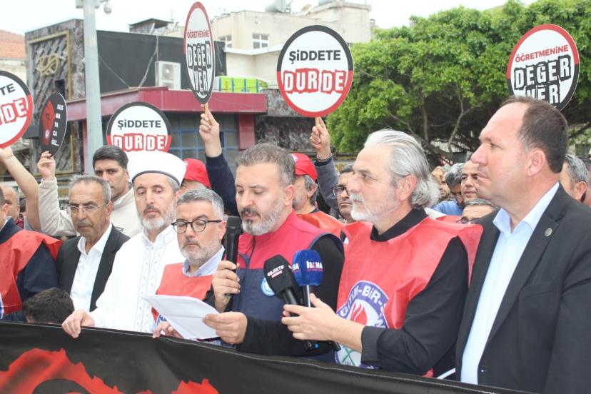 Mersin Akdeniz İlçe Müftüsü Necati Gündoğdu tarafından kıldırılan cenaze namazının ardından basın açıklaması okundu. Eğitim-Bir-Sen Mersin 1 No’lu Şube Başkanı Ertuğrul Yıldız, yaptığı açıklamada yaşanan olayların derin bir üzüntüye neden olduğunu belirterek, hayatını kaybeden öğretmen ve öğrenciler için rahmet dileğinde bulundu.