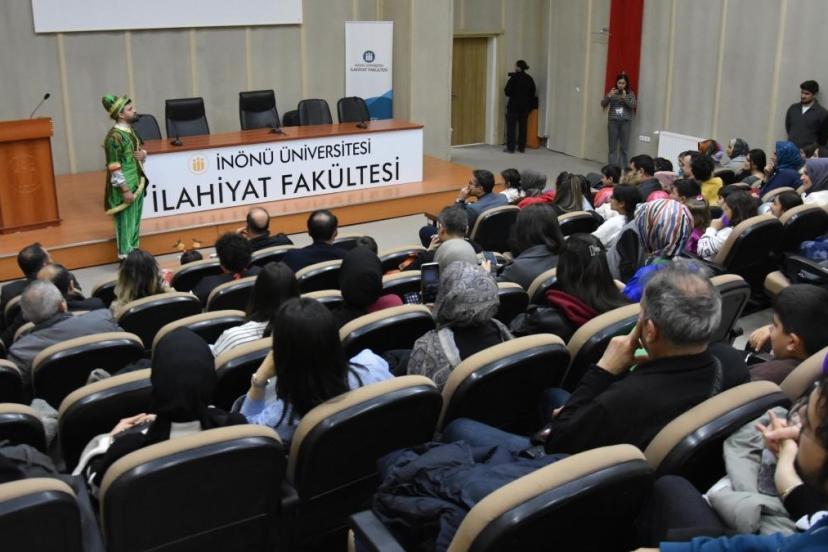 "Kampüste Ramazan Ayı Programı" etkinlikleri kapsamında İnönü Üniversitesi İlahiyat Fakültesi Zahit Aksu Konferans Salonu’nda "Karagöz ile Hacivat" gösterisi izleyicilerle buluştu.