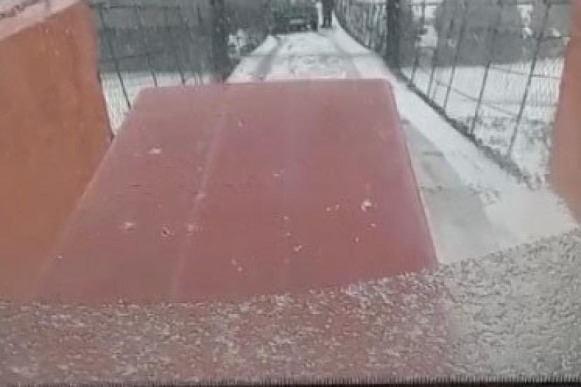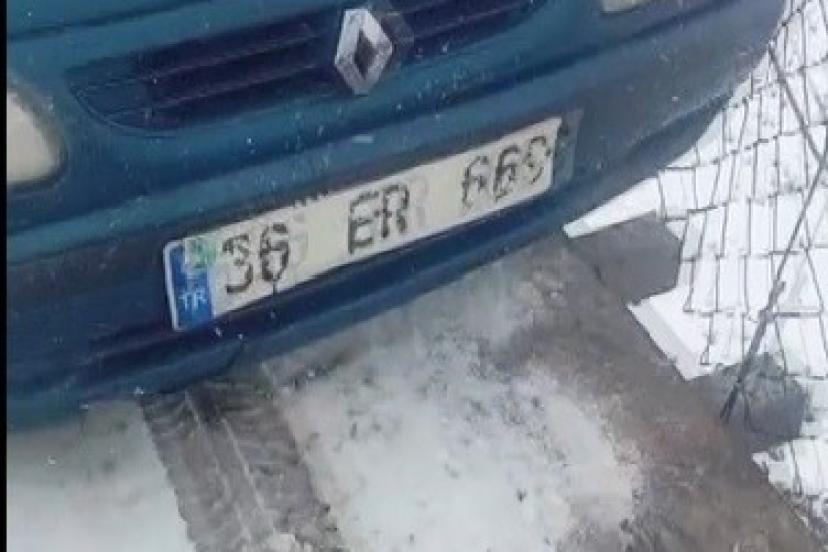 Kars’ta kar yağışı ve soğuk hava nedeniyle buz pistine dönen asma köprüde kayan bir otomobil, korku dolu anların yaşanmasına neden oldu.
