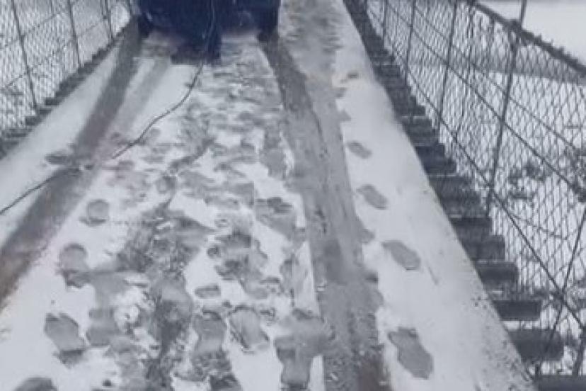 Kars’ta asma köprüde korku dolu anlar: Otomobil buzda kayarak asılı kaldı