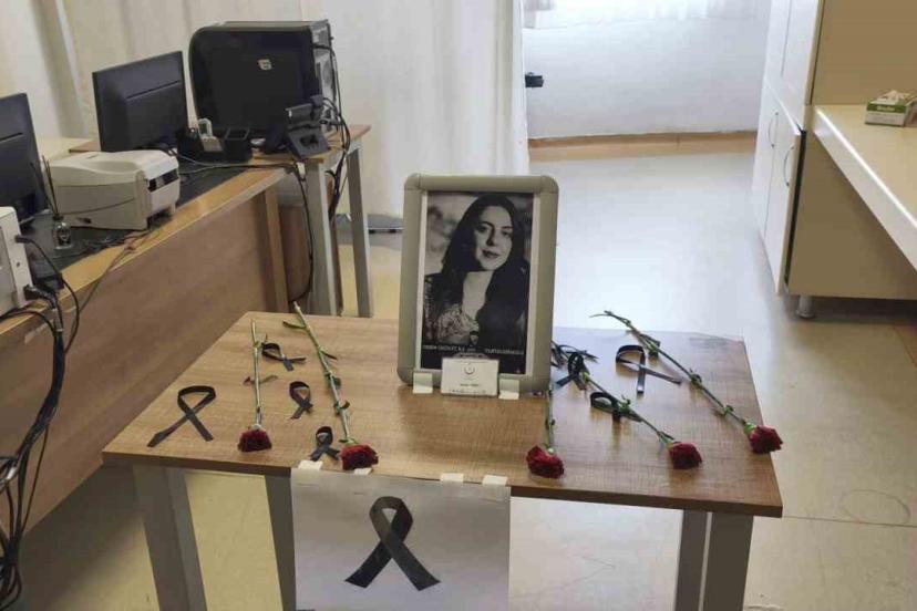 Çukurca Devlet Hastanesi’nde görev yapan Esmer Yiğit’in çalışma masası, mesai arkadaşları tarafından karanfillerle donatıldı. Arkadaşları, Yiğit’in fotoğrafını da masasına bırakarak duydukları üzüntüyü dile getirdi.