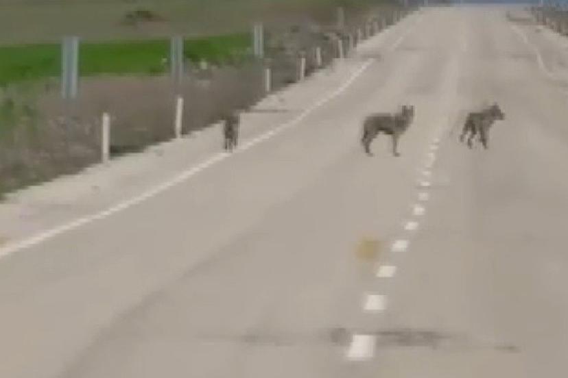 Görüntülerde, kurtların daha sonra araziye doğru kaçarak gözden kaybolduğu yer aldı.