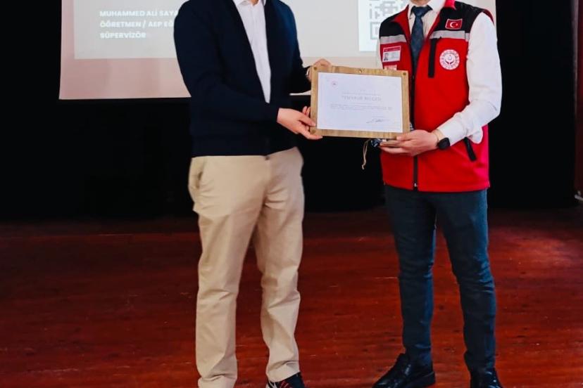 Etkinlik sonunda Kaymakam Arıkan, katkılarından dolayı Muhammed Ali Sayar’a teşekkür belgesi takdim etti.