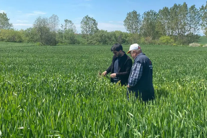 Edirne'de Keşan Ziraat Odası danışmanlarının saha incelemelerinde Akçeşme Köyü'ndeki buğday ve arpada hastalık tespit edildi.