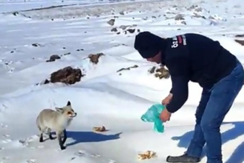Kışın zor günlerinde tilkiye işçilerden şefkat eli