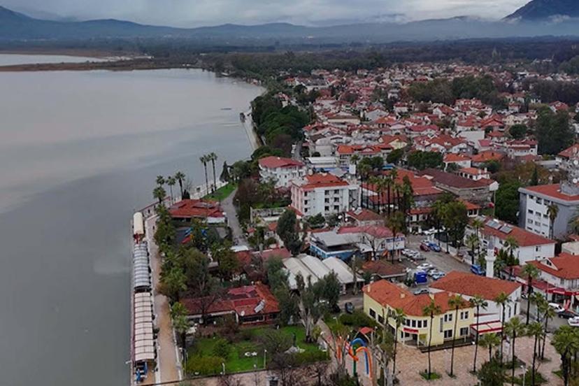 Köyceğiz Gölü taştı; su altında kalan kordon dronla görüntülendi