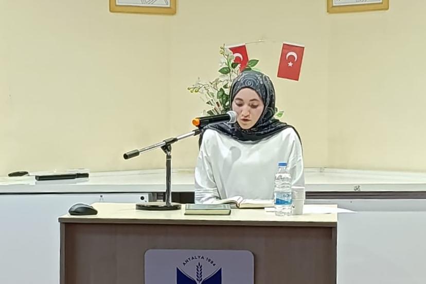 ANTALYA'da imam hatip liseleri arası Kur'an-ı Kerim'i Güzel Okuma Yarışması'nda Korkuteli Hasan Özdemirci Kız Anadolu İmam Hatip Lisesi öğrencisi Lütfiye Sena Çil, birinci oldu.