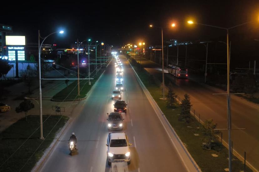 Mişmiş Park Fuar Alanı'nda bir araya gelen vatandaşlar, araçlarıyla Güney Kuşak Yolu üzerinden konvoy halinde ilerleyerek Fahri Kayahan'dan Çevre Yolu Kavşağı’na kadar ilerledi.