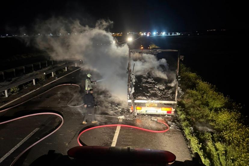 Böylece tır'ın kupa kısmı yanmaktan kurtuldu.