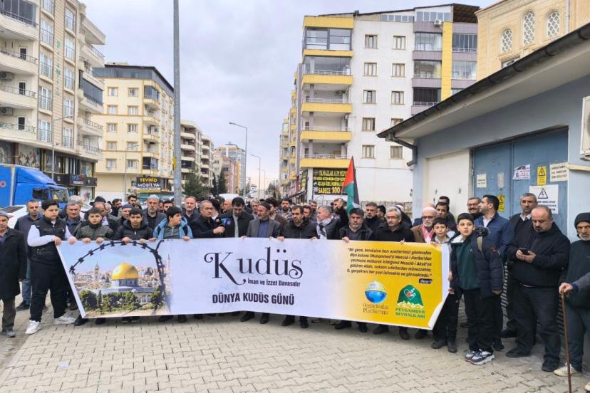 Mardin’in Midyat ilçesinde Dünya Kudüs Günü dolayısıyla düzenlenen basın açıklamasında Kudüs, Gazze ve Mescid-i Aksa’da yaşananlara dikkat çekildi. Peygamber Sevdalıları adına açıklama yapan Murat Yalçın, “Kudüs’ün özgürlüğü yalnızca Filistin’in değil, insanlığın ortak barış meselesidir.” dedi.