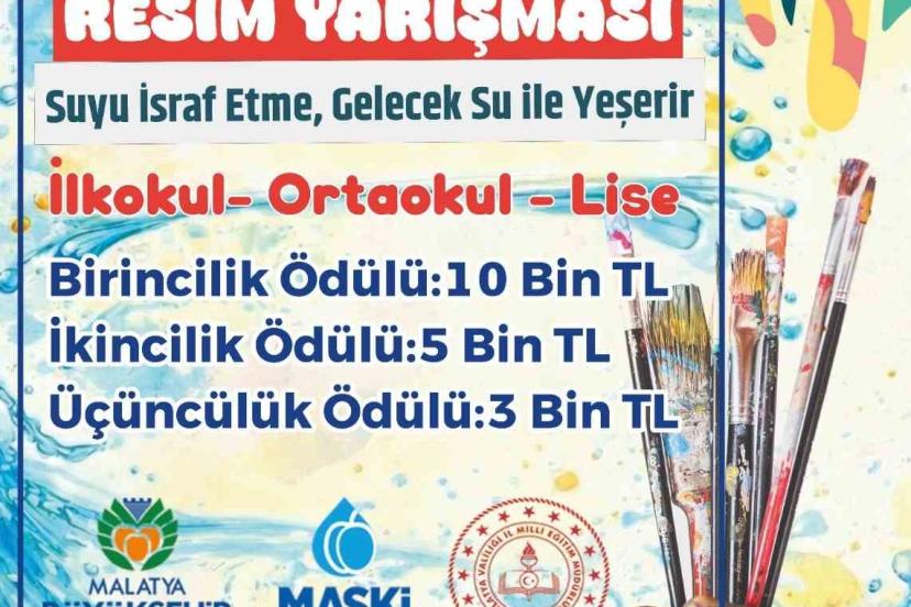 Malatya Büyükşehir Belediyesi Su ve Kanalizasyon İdaresi (MASKİ) Genel Müdürlüğü, "22 Mart Dünya Su Günü" kapsamında suyun hayati önemine dikkat çekmek amacıyla ödüllü bir resim yarışması düzenliyor.