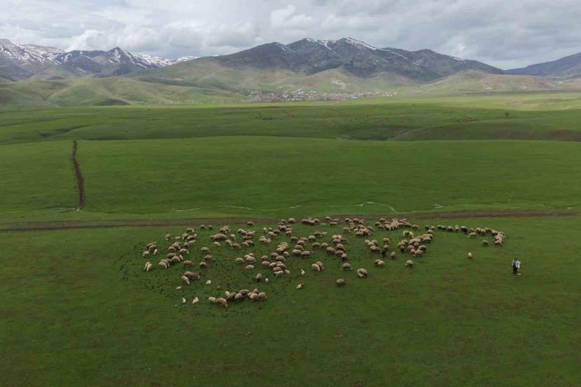 Muş’ta baharın gelişiyle birlikte koyunlar meraya çıkarılırken, ovaya akın eden sığırcıkların koyun sürüsüyle oluşturduğu görüntüler izleyenlere huzur verdi.
