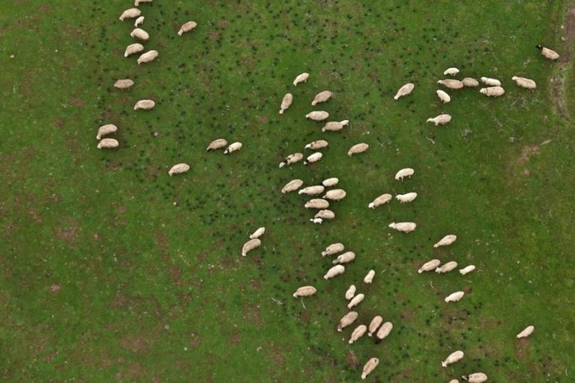 Meradaki koyunların yanına gelen sığırcık kuşları görsel şölen sundu