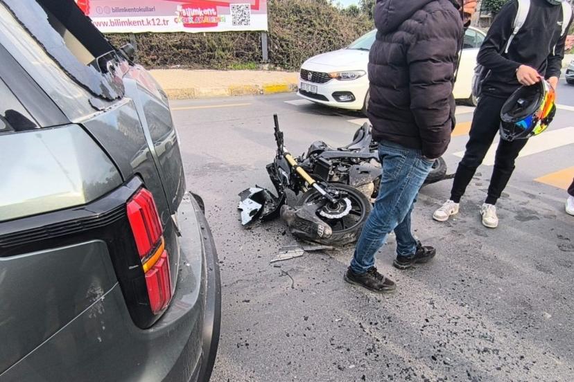 Mersin’in Yenişehir ilçesinde meydana gelen kazada, döner kavşağa yaklaşan motosikletin öndeki araca arkadan çarpması sonucu motosiklet sürücüsü yaralandı.