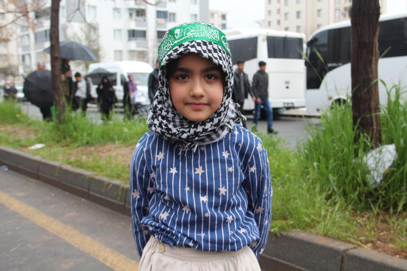 Duygularını dile getiren Şehide Ay "Yağmur da olsa herkes gelmeli. Peygamberimiz nasıl kendisini feda ettiyse ümmeti için yani biz de onun için kendimizi feda ettik. Yağmur da olsa gelmeliyiz buraya. Hepimiz burada duygularımızı anlatıyoruz. Ne güzel bir ortam, ilahiler söyleniyor, Kur'an-ı Kerim okunuyor, bize sohbet anlatılıyor. Ondan sonra ben maalesef Batman'dakine gelemedim. Medresede okuyorum ama çok gelmek istiyordum. Buraya geldim bu sefer içimi rahatlatacağım. Peygamber Efendimize buradan salat ve selamlar gönderiyorum. Burada Peygamber Efendimizi görmedik ama sanki O'da buradaymış gibi hissediyoruz ve ona salat ve selamlarımızı gönderiyoruz. Onun için bayraklar sallıyoruz. Çok güzel bir duygu, çok güzel hissettiriyor burası. Yağmur da olsa herkesin gelmesini dilerim." dedi.