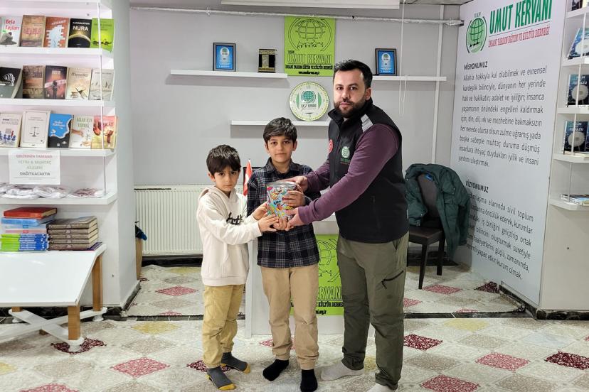 Vanlı Ammar Salih ve Ali Asaf Kameri kardeşler, aylardır kumbaralarında biriktirdikleri harçlıklarını Gazze’ye ulaştırılmak üzere Umut Kervanı'na teslim etti.