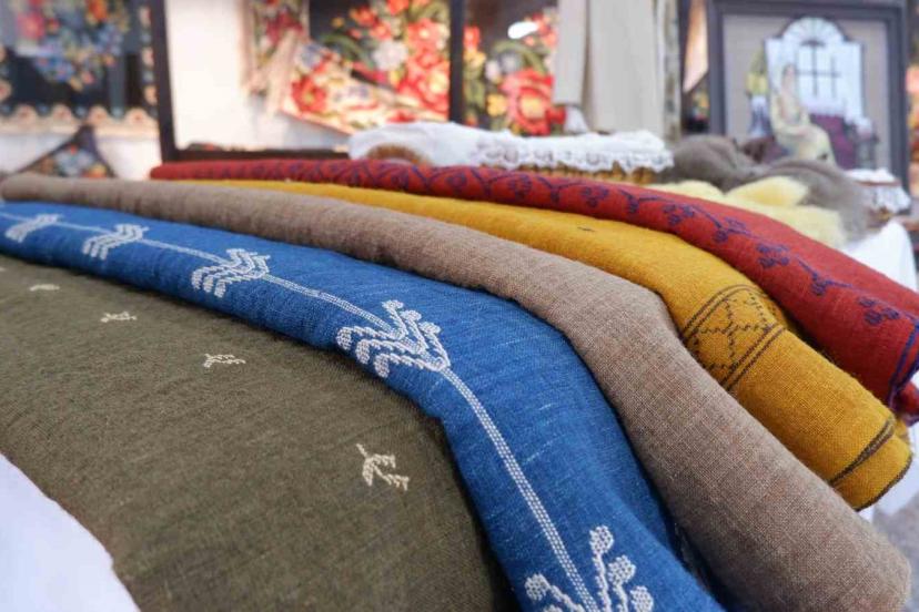 Erzurum’daki bir çok atölyede koyun yününden elde edilen ipliklerin dokunmasıyla elde edilen ehram kumaşıyla giyimden süs eşyalarına, tablolardan yastıklara daha onlarca ürün ortaya çıkarılıyor.