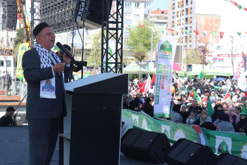 "Ey Müslümanlar! Biz niye bu haldeyiz? Niye Aksa'mıza sahip çıkamıyoruz? Niye Gazze'mize sahip çıkamıyoruz? Niye oradaki kardeşlerimize bir bardak su ulaştıramıyoruz? Niye bu zillete boyun eğiyoruz? Niye elimizi düşmanımıza açıyoruz? Umudumuzu onlara bağlıyoruz. Bu zilletin sebebi ne? Bu zayıflığın sebebi ne? Düşmanın çok güçlü olmasından mıdır gerçekten?" diye sorular soran Molla Beşir Şimşek, şöyle konuştu: