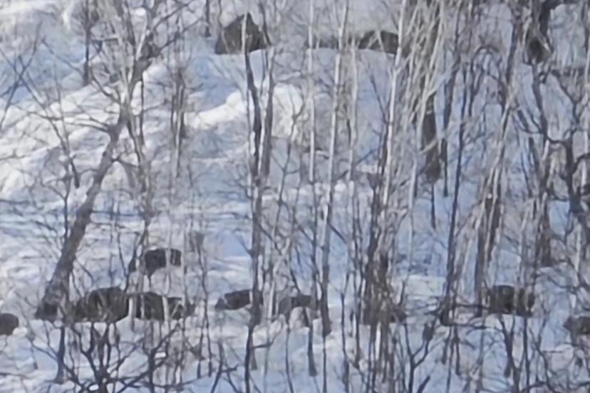 Tunceli’nin doğal güzellikleriyle öne çıkan Munzur Vadisi’nde, karlı dağlarda yiyecek arayan domuz sürüsü görüntülendi.