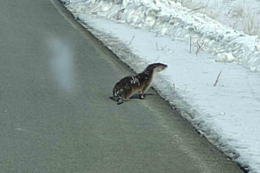Ardahan’da yolunu kaybeden su samuru kara yolu kenarında görüntülendi.