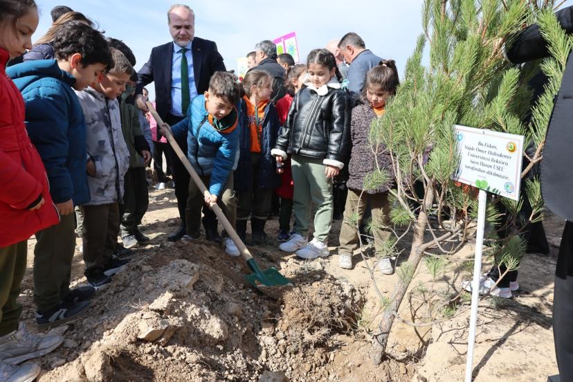 21-26 Mart Orman Haftası kapsamında, Niğde Ömer Halisdemir Üniversitesi (NÖHÜ) ev sahipliğinde düzenlenen 'Bal Ormanı 5. Etap Ağaç Dikimi Programı' yoğun katılımla gerçekleştirildi.