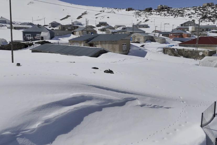 Bitlis’in Adilcevaz ilçesi Süphan Dağı eteğindeki Kışkılı Mahallesi, nisanda yer yer 3 metreyi bulan karla baharı bekliyor.