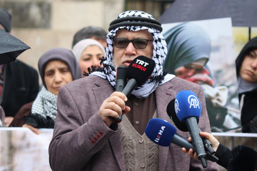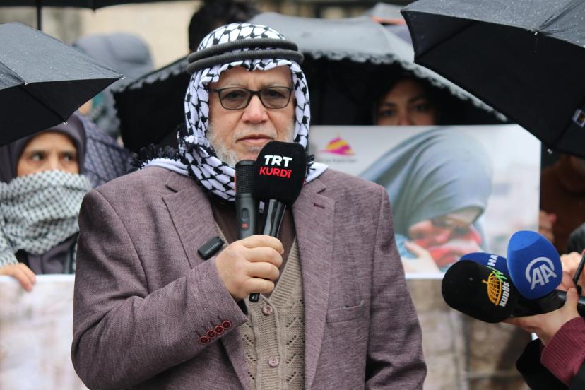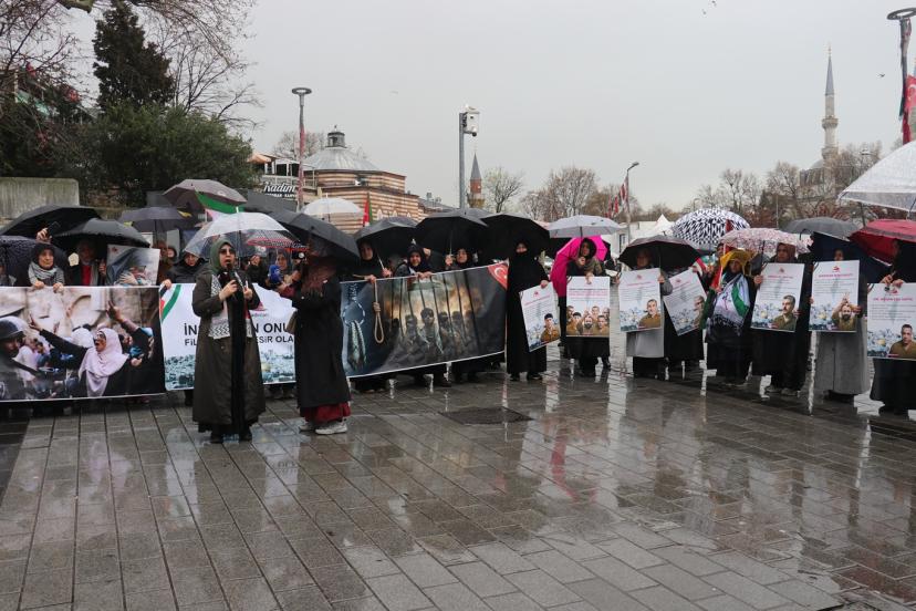 Aksa Kadınları Derneği başkanı Müyesser Yağız'ın açılış sunumuyla başlayan programda bir konuşma yapan Filistinli Gazeteci Muin Naim, "Bugün idam kararına karşı çıkarken aslında ümmetin idam kararına karşı çıkıyoruz. Allah korusun bir Filistinli esir o sehpalarda sallanırsa bilinsin ki İslam ümmeti o sehpalarda sallanmıştır. Çünkü bir Filistinli esir bugüne kadar idam edilmediyse, israilin hukuka riayet etmesinden değil az da olsa hala İslam ümmetinden korkmasından kaynaklanıyor. Batı medeniyeti zaten öldü. Gazze'de bebekler ve çocuklar paramparça edilirken sesiz kaldılar. Uluslararası hukuk, insan hakları ölmüştür." diye konuştu.