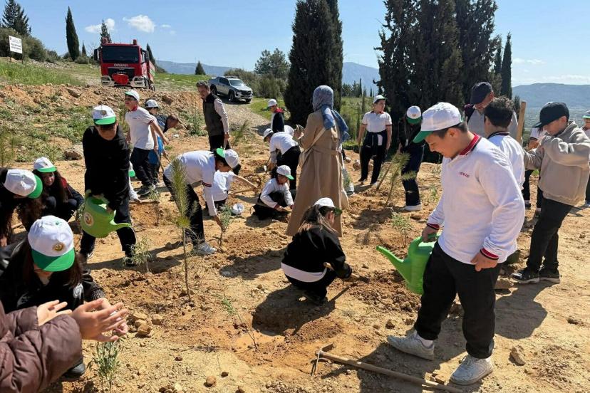 MUĞLA'da ortaokul öğrencilerinin katılımıyla, 'Yeşil Vatan – Benim Okulum Geleceğe Çare' projesi kapsamında çevre ve doğa bilincine yönelik etkinlik düzenlendi. Programda öğrencilere orman sevgisi aşılanırken, fidan dikimi gerçekleştirilip çeşitli hediyeler verildi.