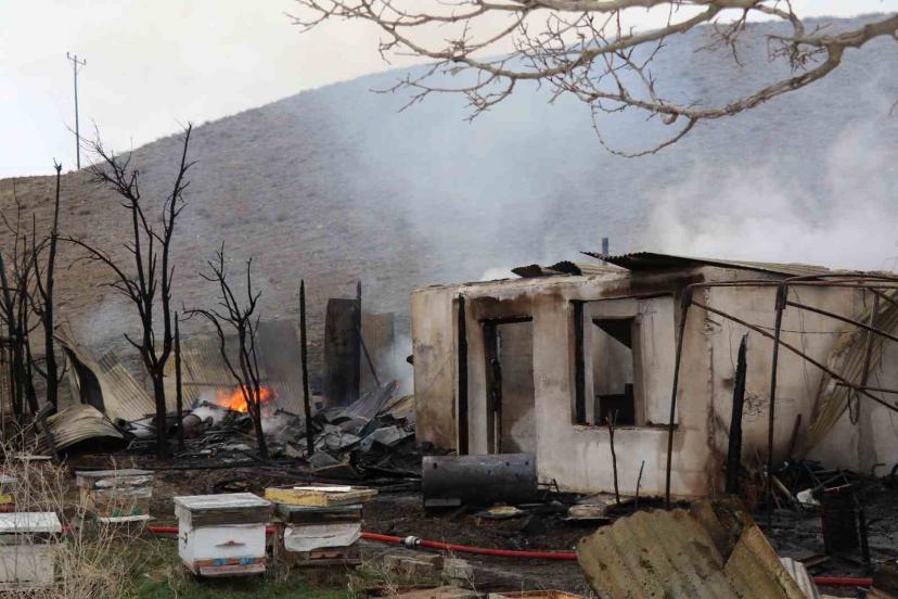 Oltu ilçesinde elektrik kontağından çıktığı değerlendirilen yangında arı kovanları ve tarımsal ekipmanlar yanarak kül oldu.