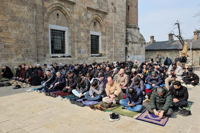 Cami dolup taşarken, camide yer bulamayanlar avlu ve çevredeki alanlarda namazlarını kıldı. Ramazan ayının manevi ikliminin yoğun şekilde hissedildiği namazda cemaat, birlik ve beraberlik içinde ibadet etti.