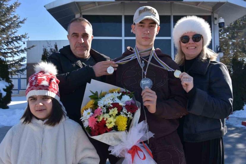Milli sporcu daha sonra Türk bayrakları ile donatılan araçla evinin yolunu tuttu. İlyas Karadağ’ın babası Arif Karadağ ile annesi Yulia Karadağ da havalimanında çocuklarını karşılarken, büyük bir gurur yaşadılar.