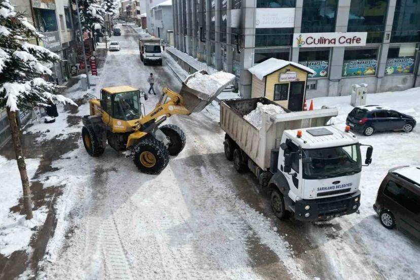 Çalışmalar kapsamında iş makineleriyle bir noktaya toplanan kar yığınları, kamyonlara yüklenerek ilçe dışındaki boş alanlara taşınıyor. Belediye ekiplerince 2 günde yaklaşık 600 kamyon kar ilçe merkezinden uzaklaştırıldı. Kar taşıma işlemlerinin, yolların genişletilmesi ve buzlanma riskine karşı kritik önem taşıdığı belirtildi.